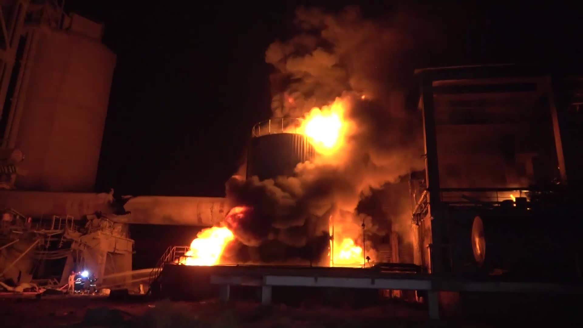 1. Berbagai cuplikan kebakaran di pabrik semen pascaserangan udara Israel dan pemadaman kebakaran