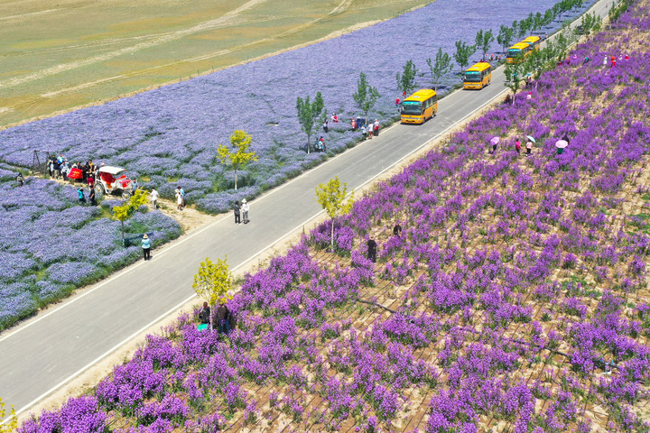 (230519) -- ILI, China, 19 Mei, 2023 (Xinhua) -- Foto udara yang diambil pada 18 Mei 2023 ini memperlihatkan para wisatawan mengunjungi sebuah taman industri pertanian lautan bunga di wilayah Yining, Prefektur Otonom Etnis Kazak Ili, Daerah Otonom Uighur Xinjiang, China barat laut. Prefektur Otonom Etnis Kazak Ili telah mengembangkan ekonomi tamasya bunga dalam beberapa tahun terakhir, yang mendongkrak pariwisata lokal, menarik banyak pengunjung dan meningkatkan pendapatan masyarakat setempat. (Xinhua/Ding Lei)