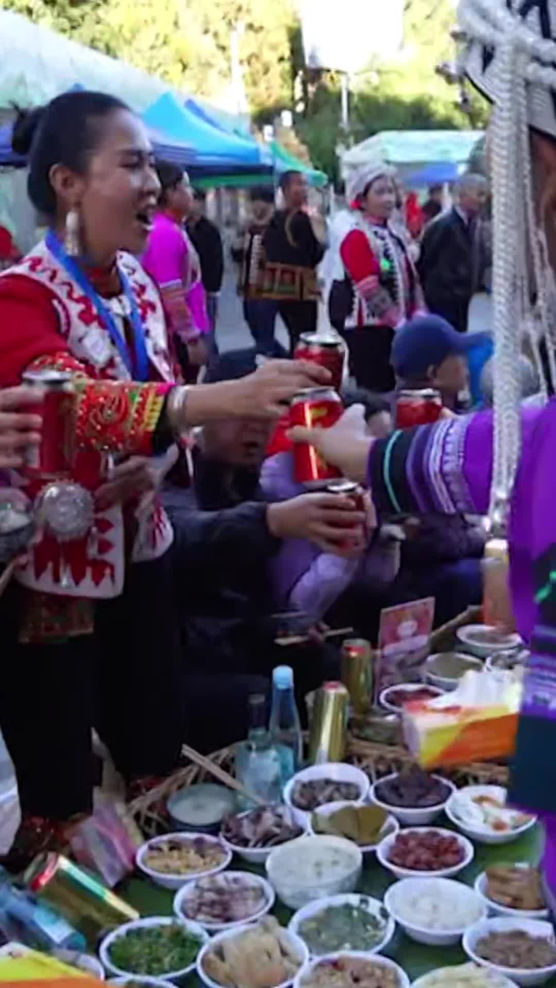 1. Berbagai cuplikan jamuan makan untuk merayakan Tahun Baru masyarakat etnis Hani