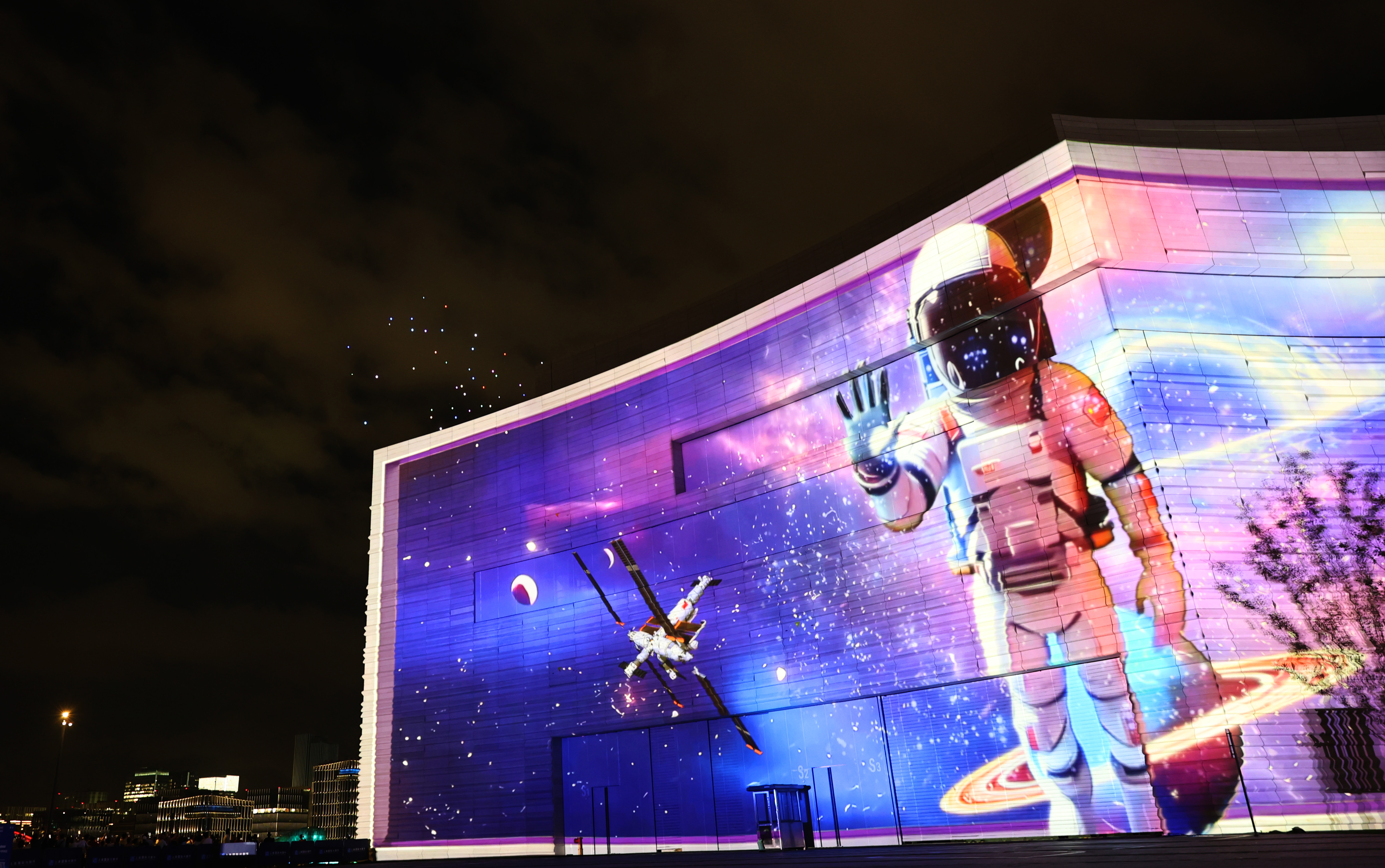 Foto yang diabadikan pada 19 September 2025 ini menunjukkan pertunjukan cahaya kubah dalam upacara pembukaan Festival Shining Shanghai ke-2 di Shanghai, China timur. (Xinhua/Fang Zhe)