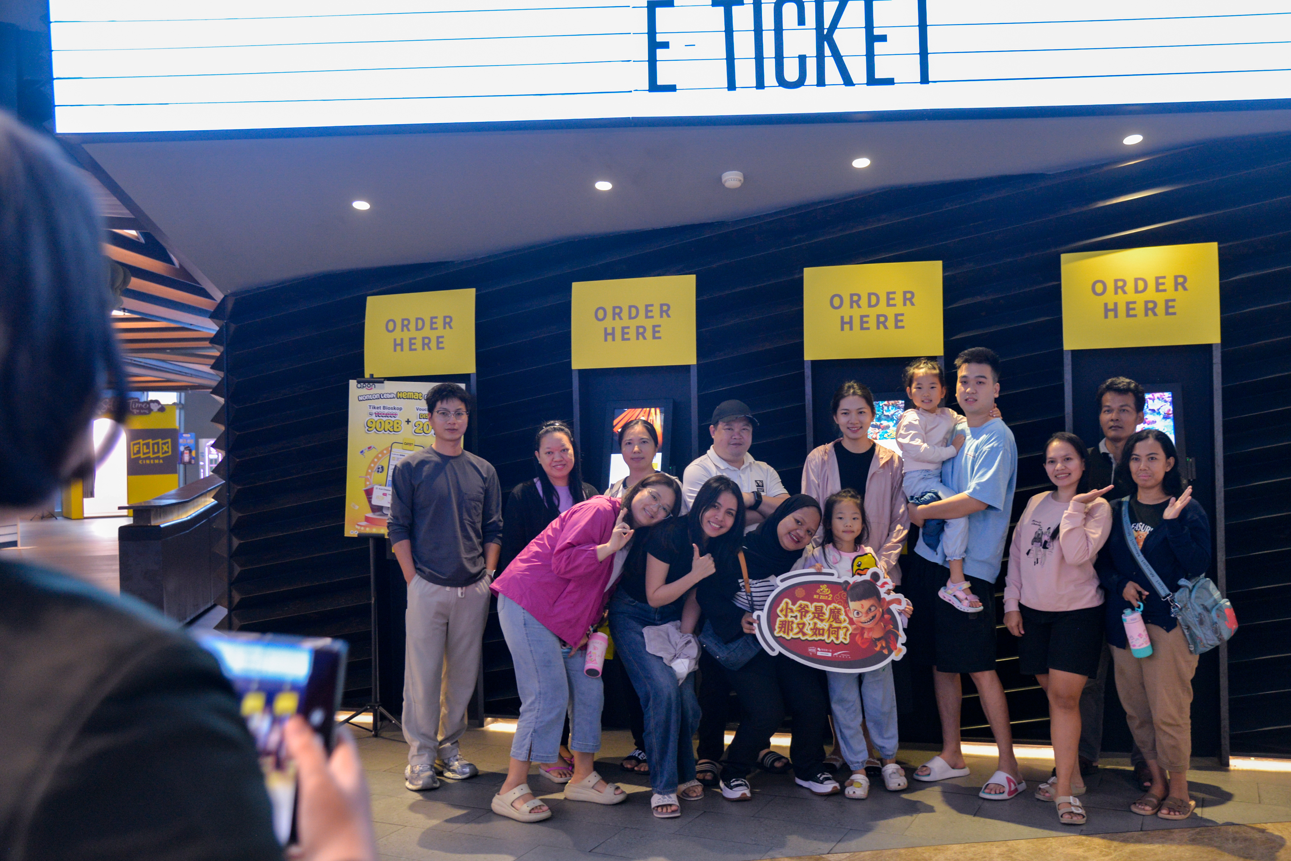 Foto yang diabadikan pada 21 Maret 2025 ini menunjukkan para penonton film Ne Zha 2 sedang berfoto bersama sebelum menonton film tersebut di sebuah bioskop di Jakarta. (Xinhua)