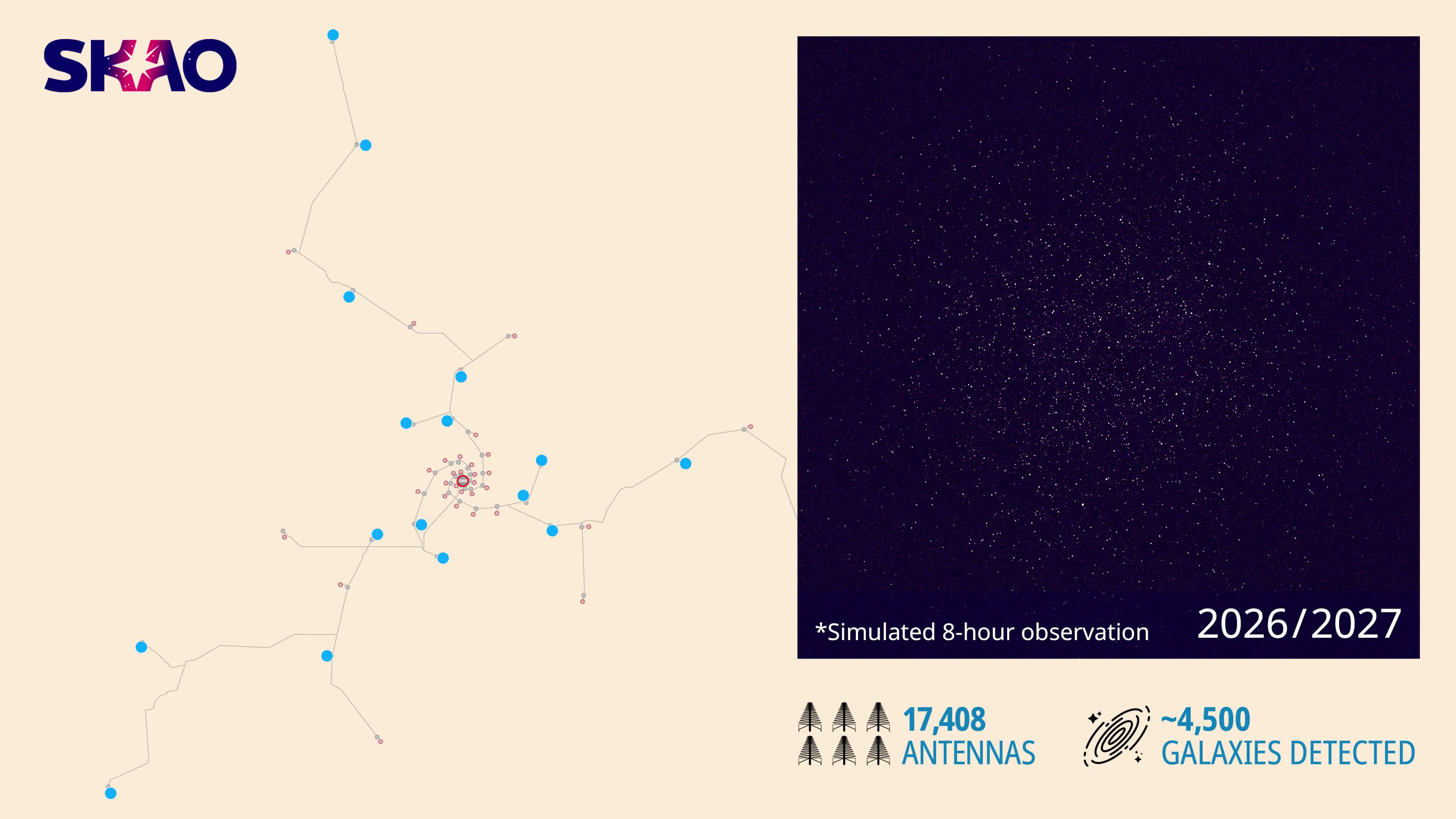 Begitu beroperasi penuh, SKA-Low diperkirakan dapat mendeteksi lebih dari 600.000 galaksi dalam bidang pandang yang sama, menurut CSIRO. Pemerintah Australia bermitra dengan komunitas lokal dan CSIRO untuk memastikan pembangunan dan pengoperasian teleskop SKA-Low di bagian barat negara itu.