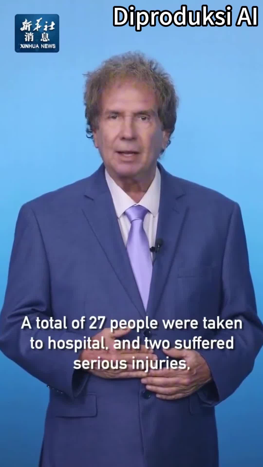 Sebanyak 27 orang dibawa ke rumah sakit, dan dua orang menderita luka serius, termasuk seorang anak, kata layanan darurat North West Ambulance Service.