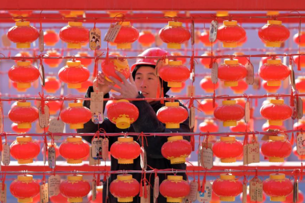 Dilansir dari People Daily China Rabu (24/01/24),Orang-orang memasang dekorasi di area indah menjelang Tahun Baru Imlek mendatang di Distrik Fengnan, Tangshan, Provinsi Hebei, Tiongkok utara.